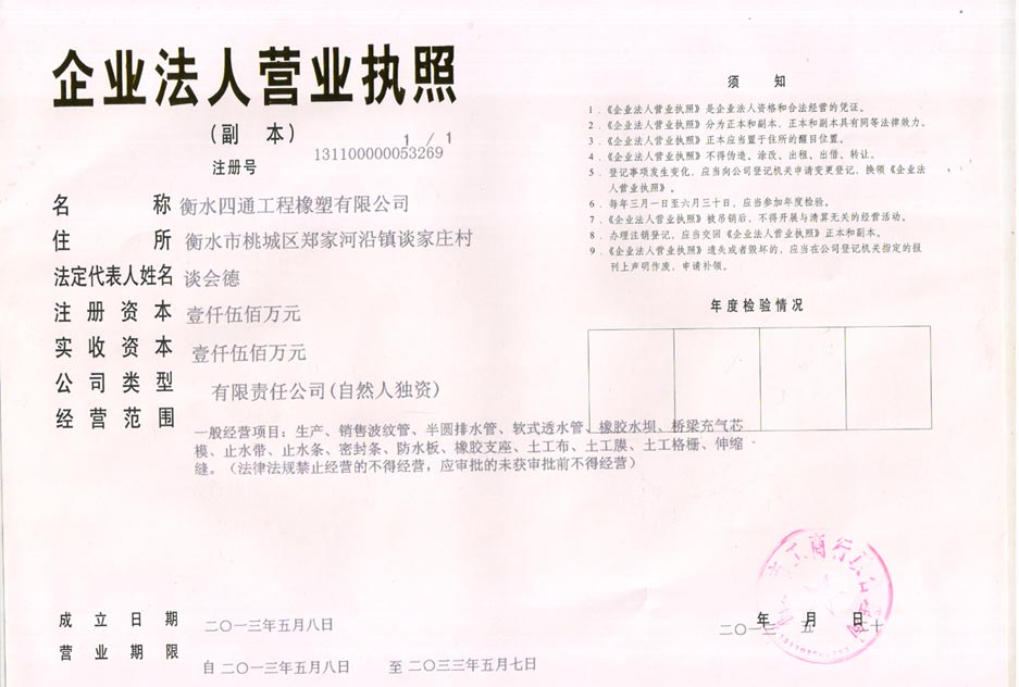 衡水四通工程橡塑有限公司 地址:衡水市衡湖經(jīng)濟(jì)開發(fā)區(qū)1007號